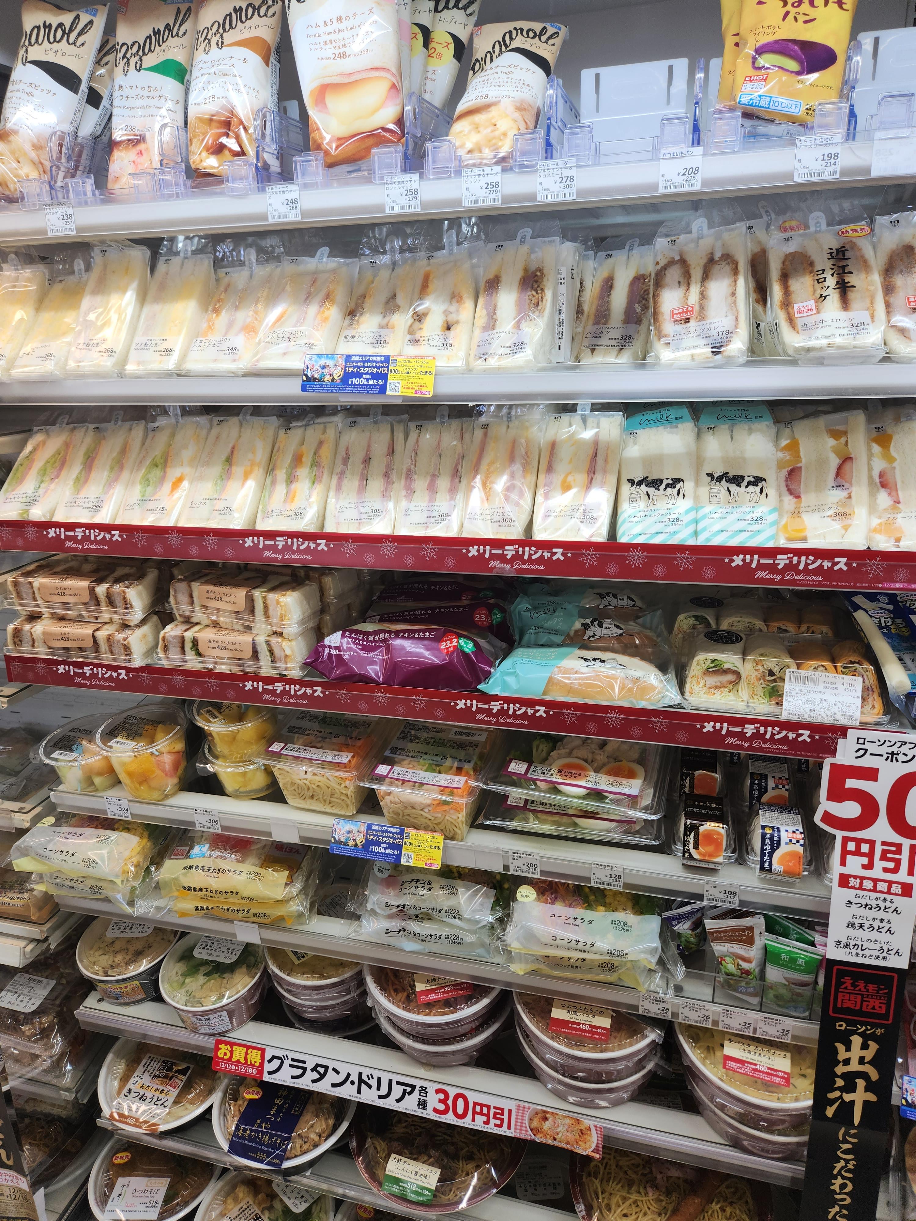 근처 로손 편의점에서 좀 더 먹기로 한다. 가츠산도, 캬라멜 마키아토 등을 구입해서 역시 바깥 벤치에 앉아 가볍게 먹었다. 정말 다행이다. 날씨가 그렇게 춥지 않아서.