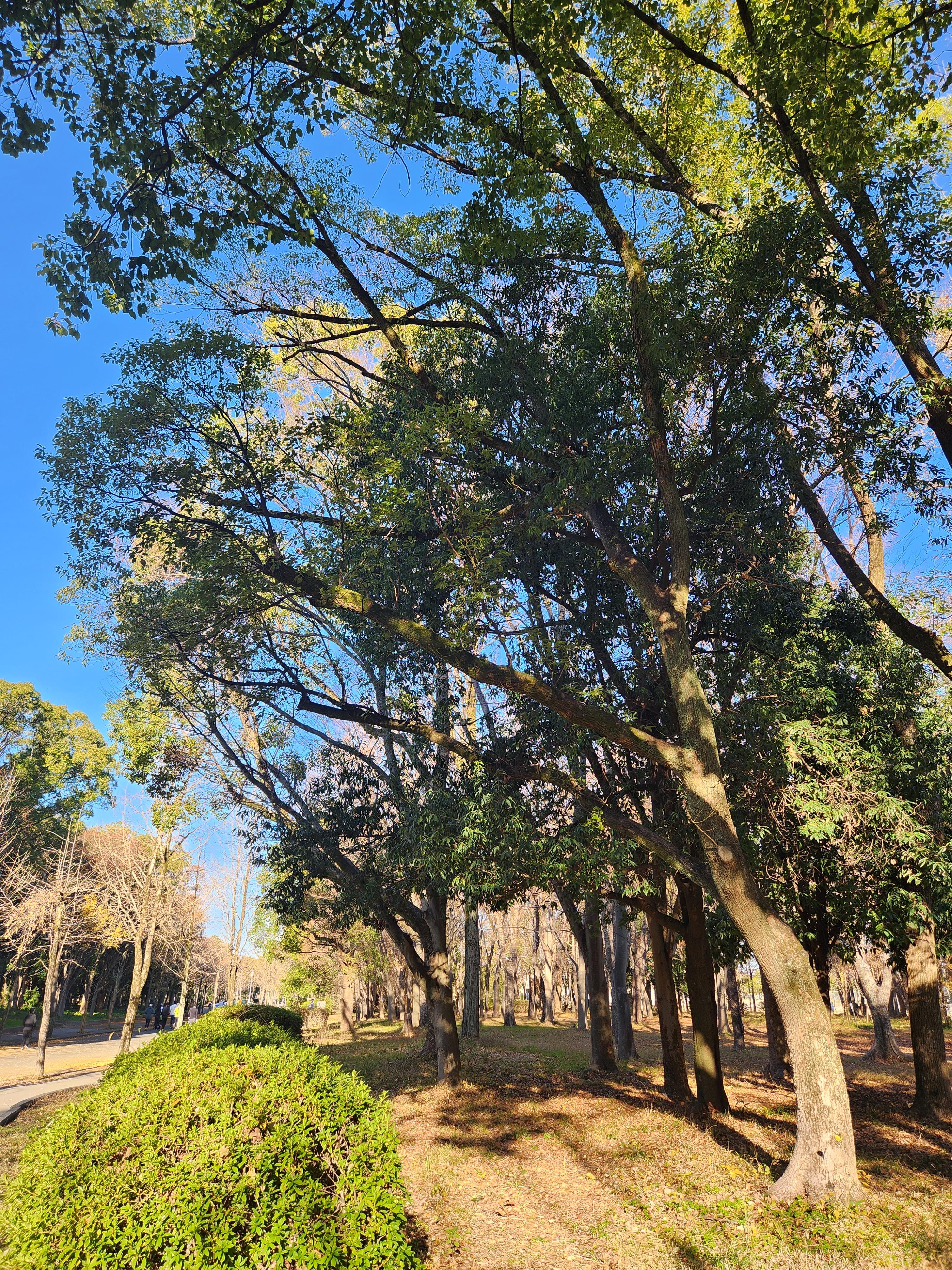 오사카조 코엔(오사카성 공원)에 들어왔다. 겨울이지만 아직도 푸릇푸릇한 느낌이다. 여느 공원과 크게 다를 건 없었지만, 공원은 사실 어디나 좋다.