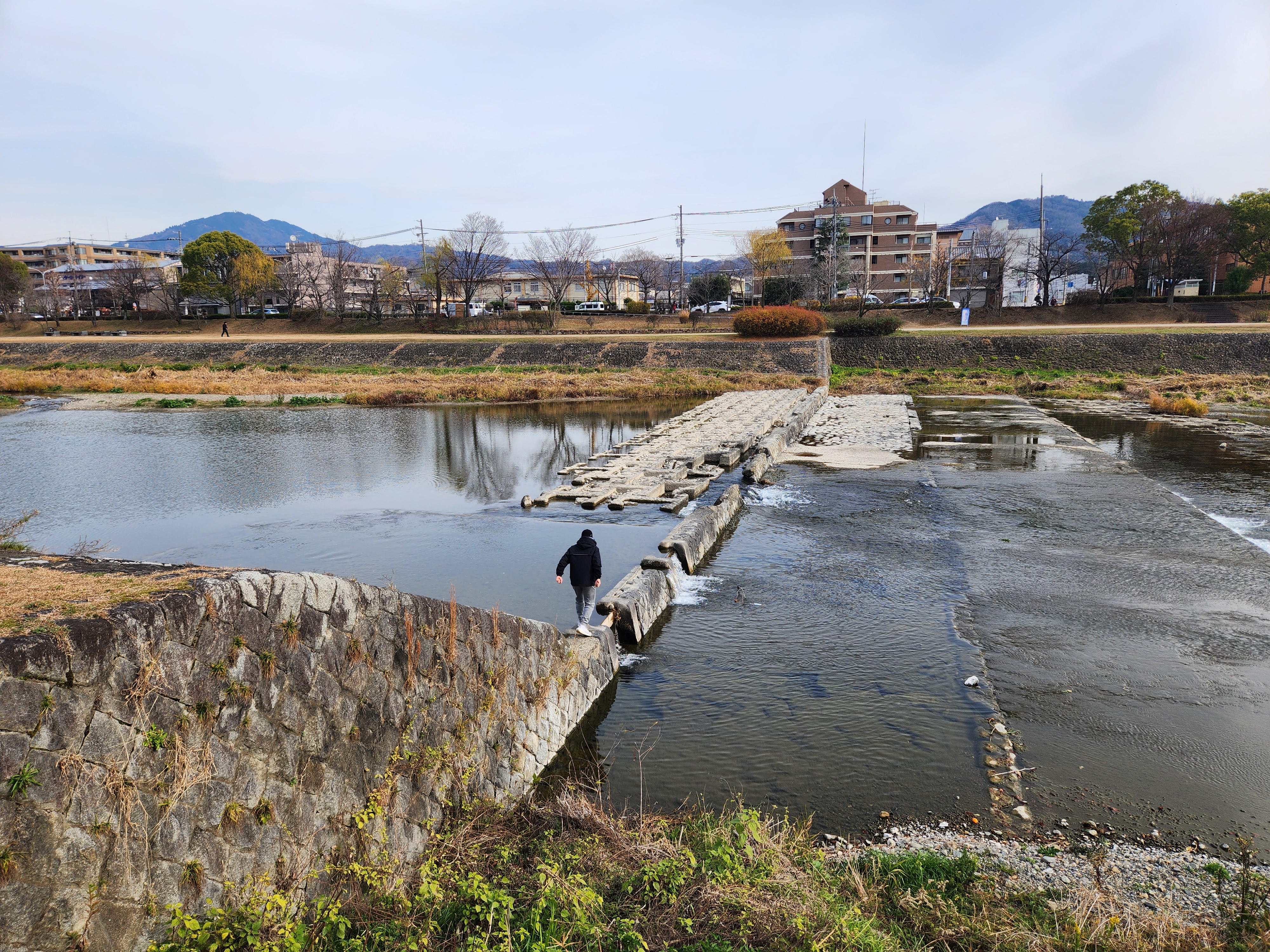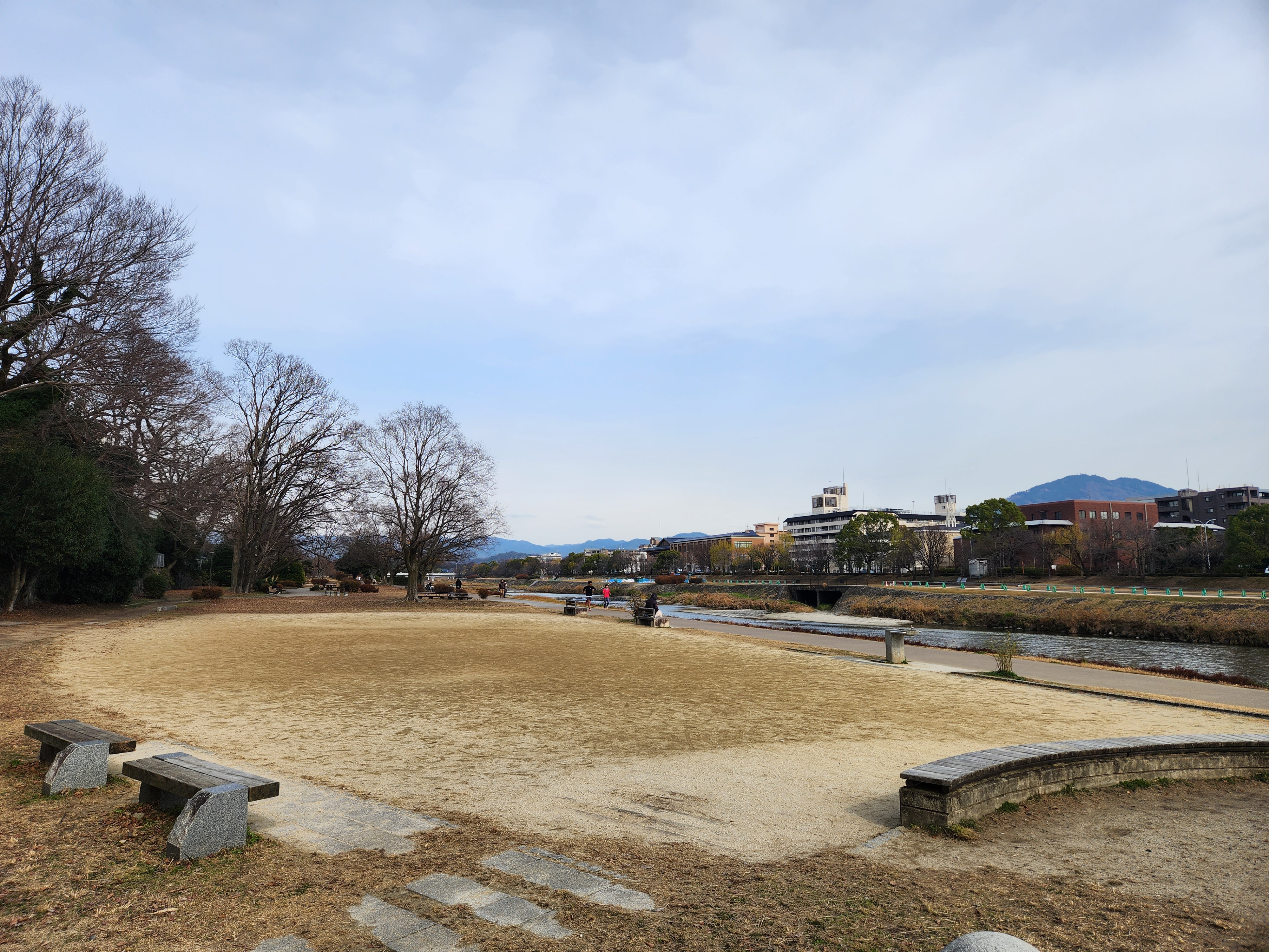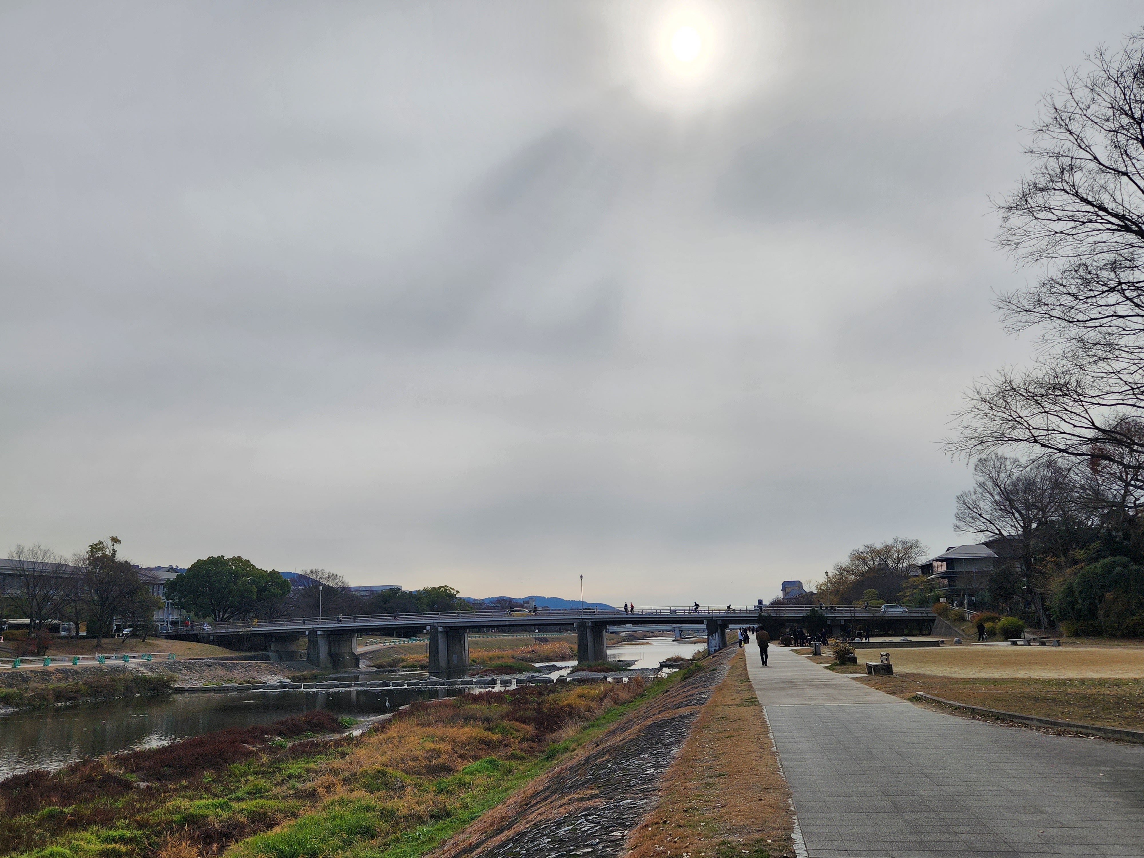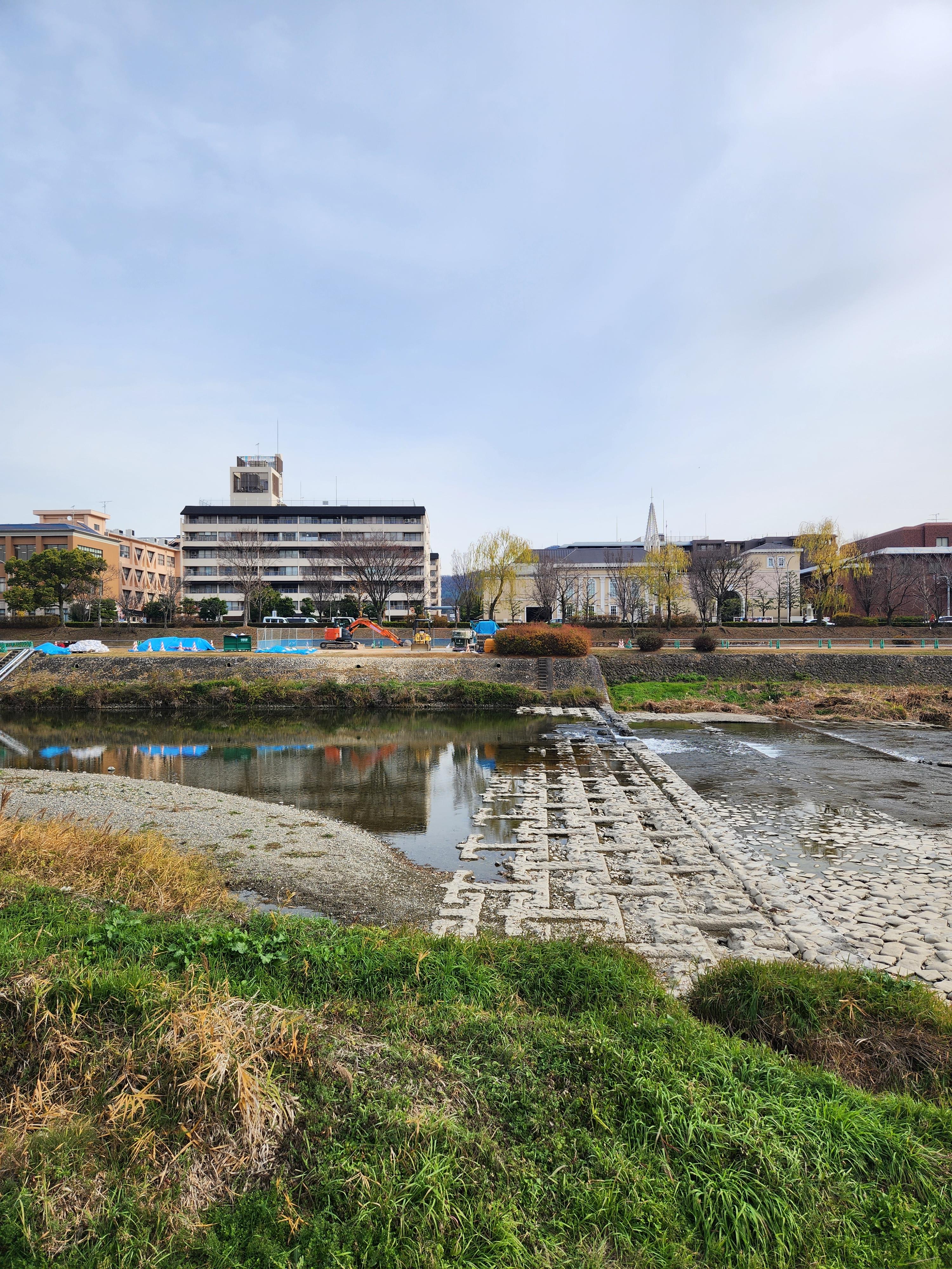 교토코엔에서 동쪽 출구로 나오면, 카모 강으로 연결된다. 카모 강으로 가는 길은 일반 주택가였다.