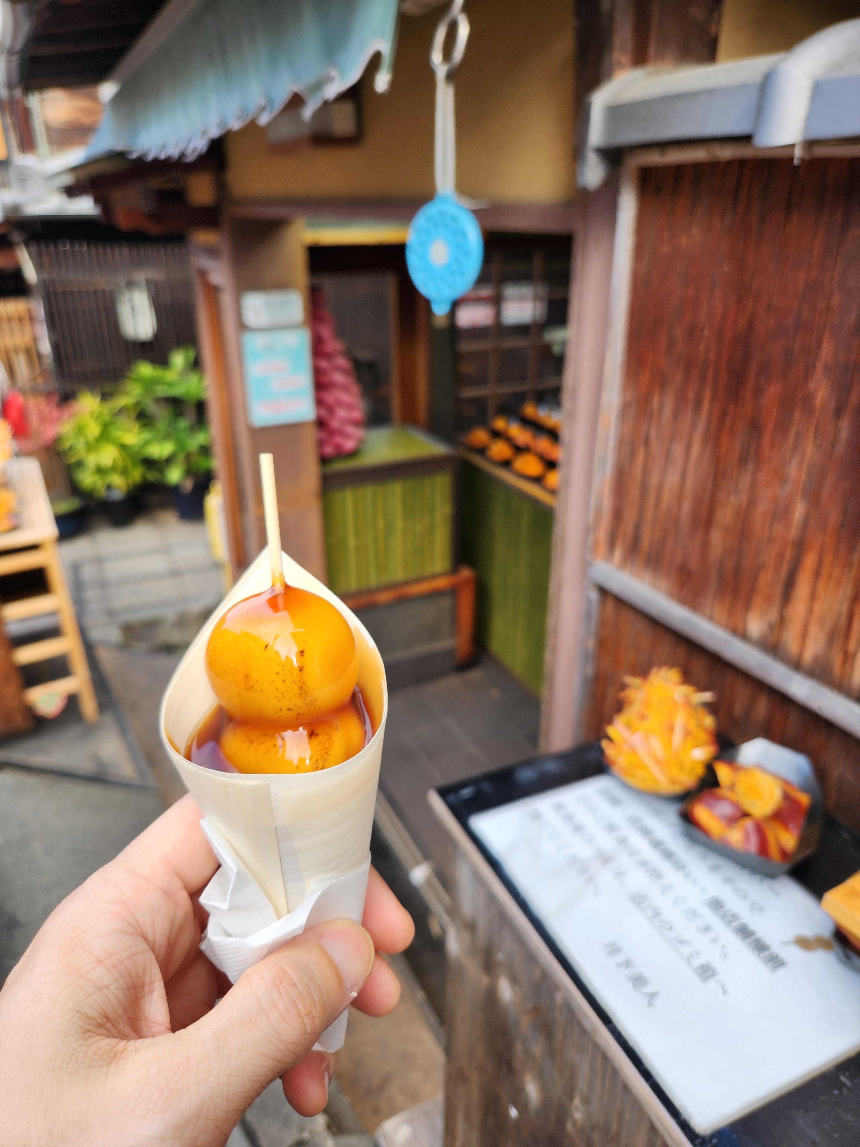 280엔 정도 했던 거 같다. 큰 찹살떡 3개가 꿀 같은 소스에 버무려져 있다. 그래서 그냥 무조건 맛있을 수 밖에 없는 맛이다.