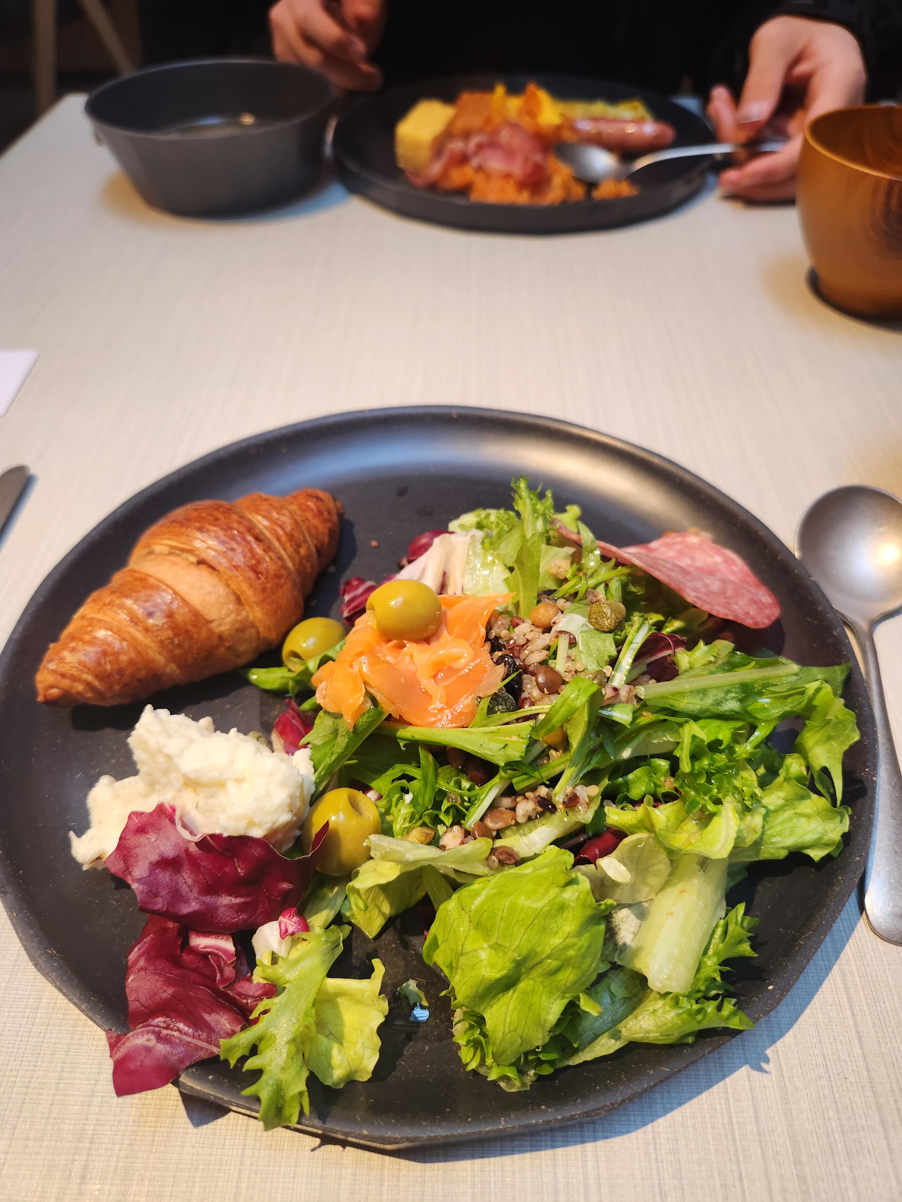 우선은 가볍게 샐러드를 만들어 먹는다. 크로와상이 유난히 맛있었다.