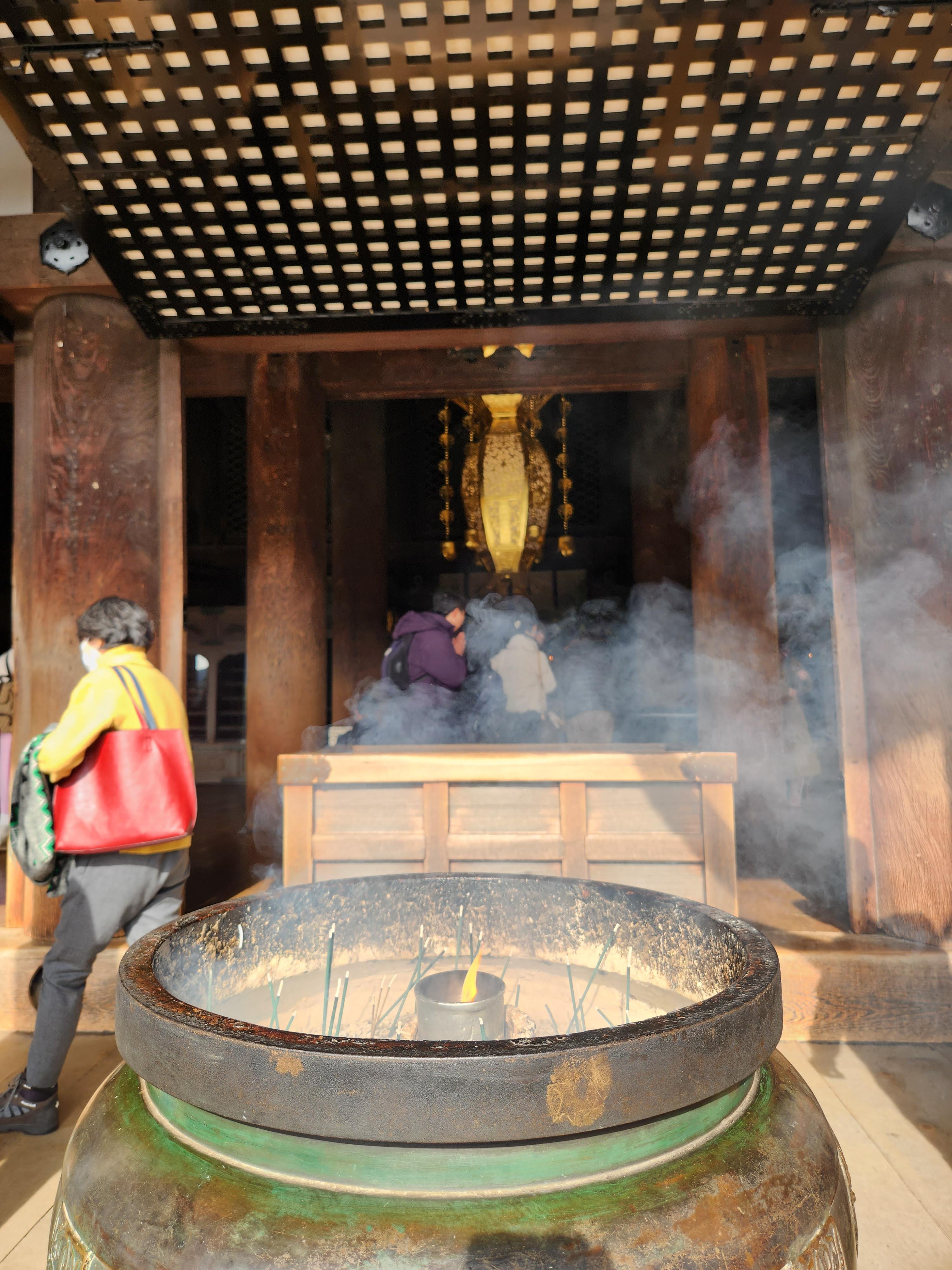불교 신자는 아니지만, 한국에서도 절에 오면 꼭 와이프가 돈을 내고 소원을 빈다. 나는 그냥 못이기고 동참만 하는 편이다. 이 향초는 10엔이라 자투리 돈을 상자에 집어넣고, 부처님께 기도를 해본다.