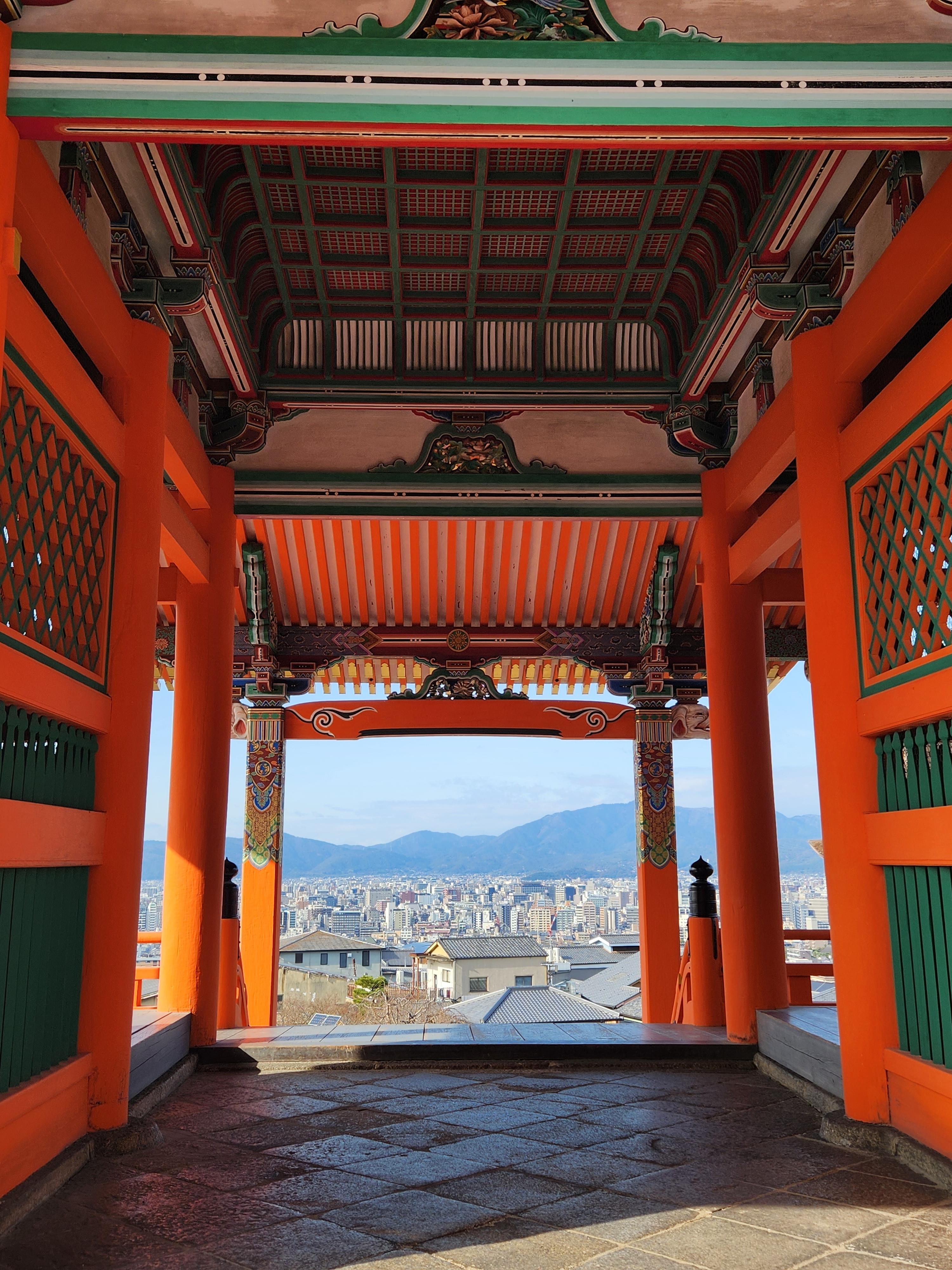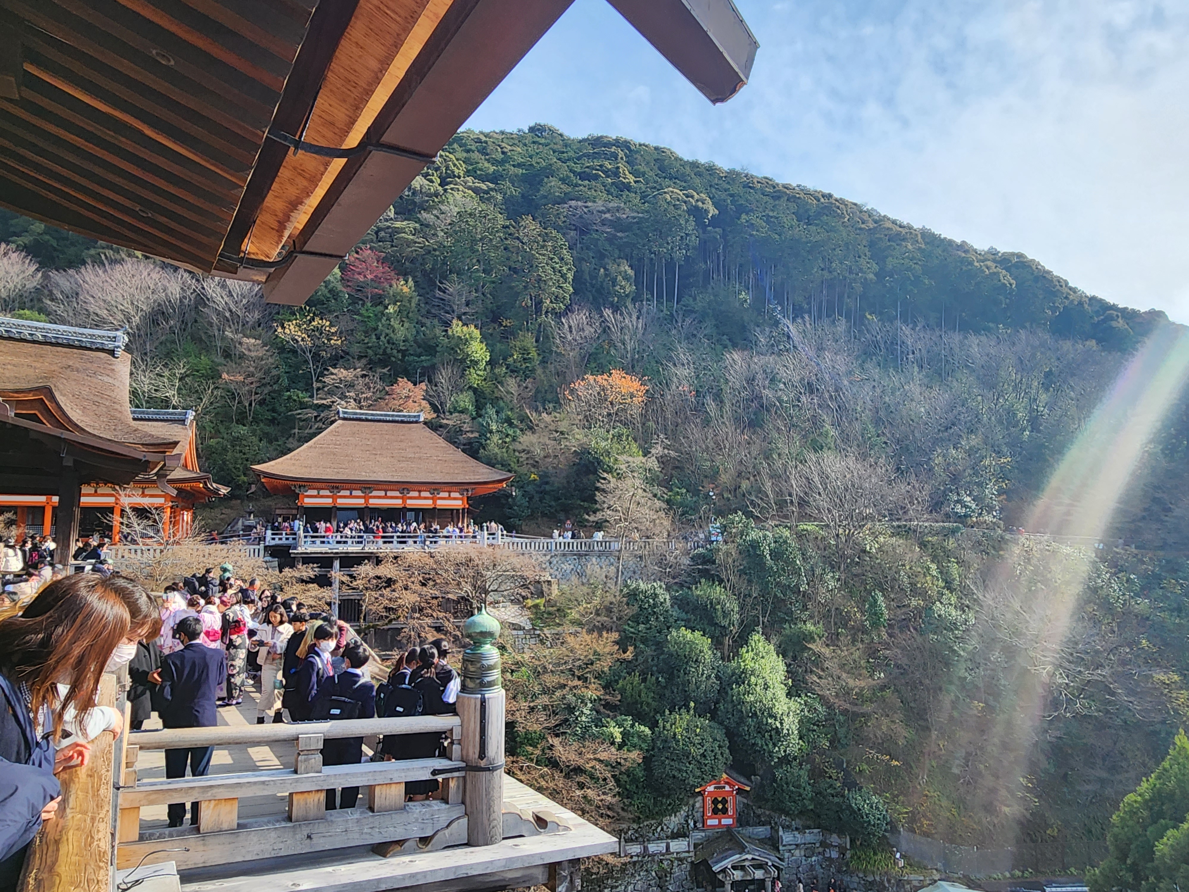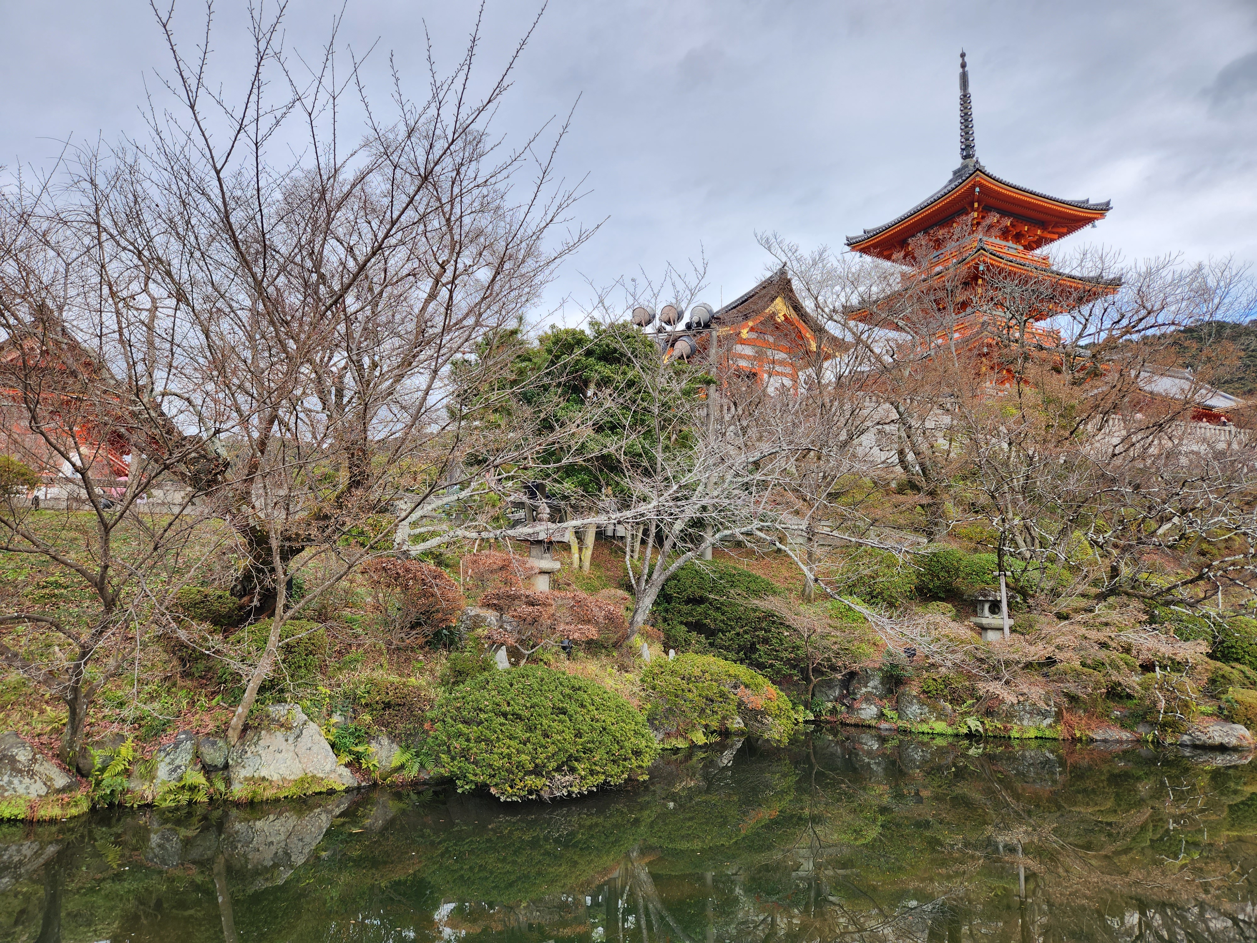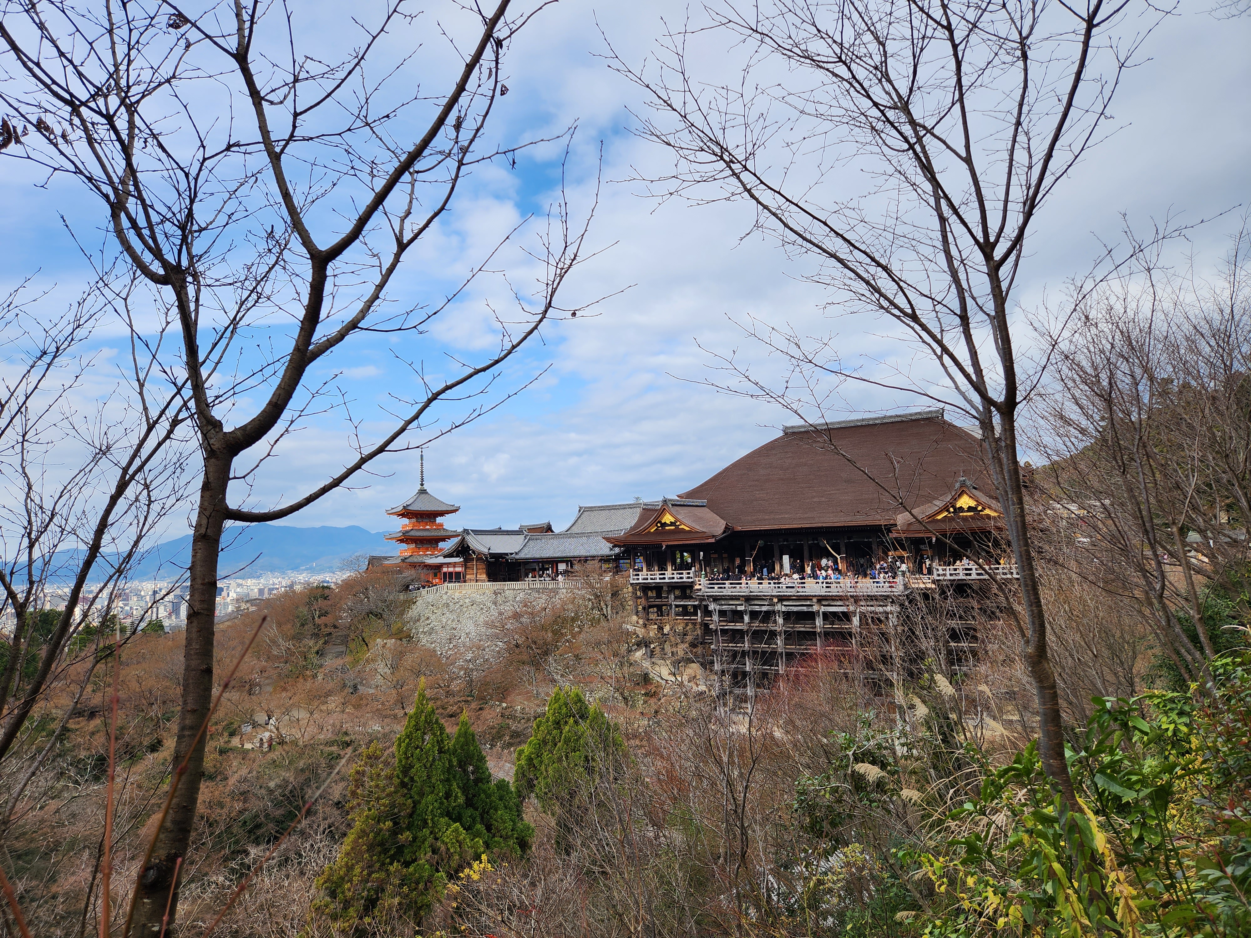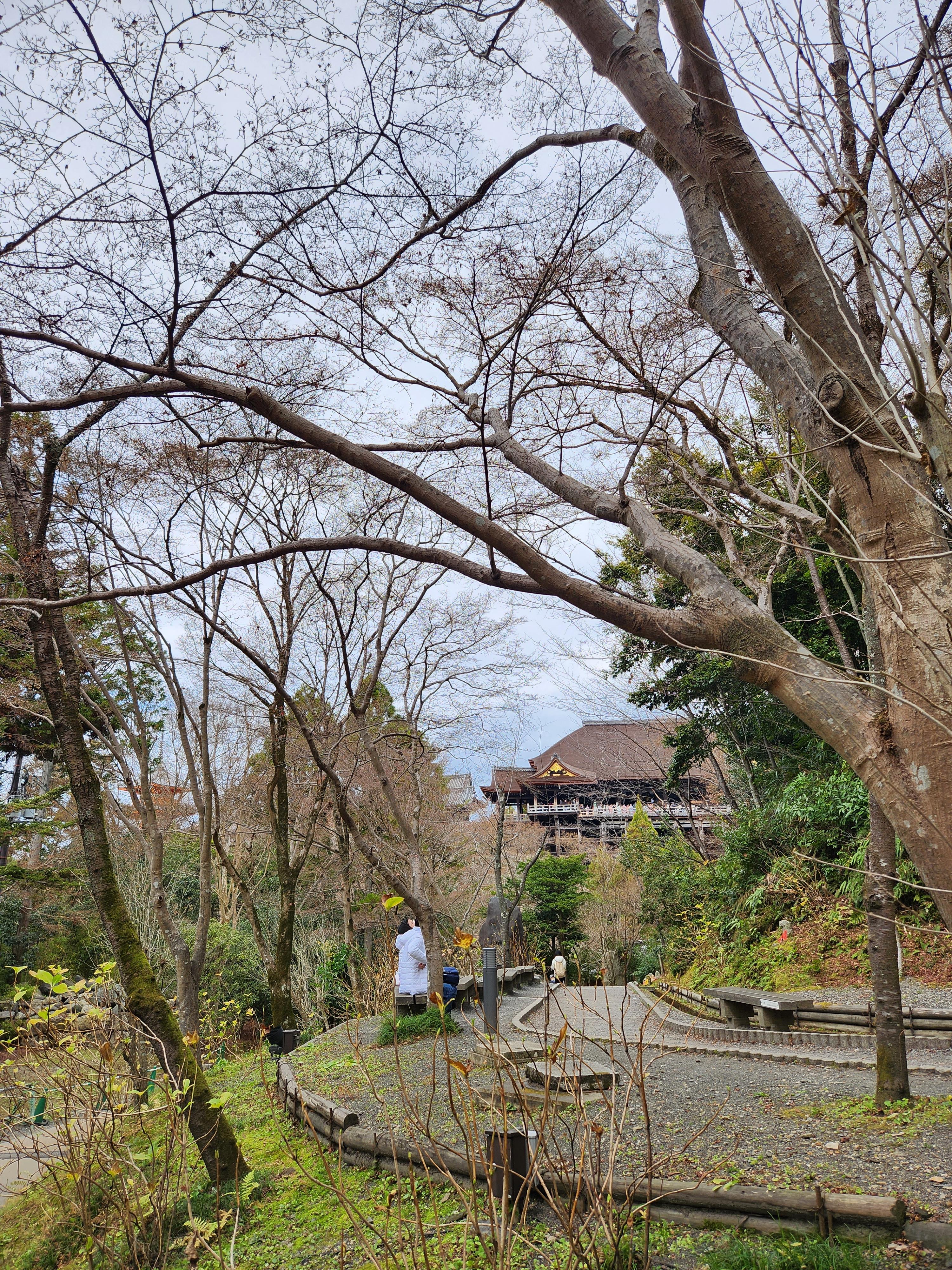 본당이 가장 잘 찍힌다는 곳까지 갔다. 사람이 엄청나게 많다. 교토 가이드북의 대표적인 사진이긴 하지만, 실제로 봐도 너무 멋있다. 가을이면 얼마나 더 좋을까..
