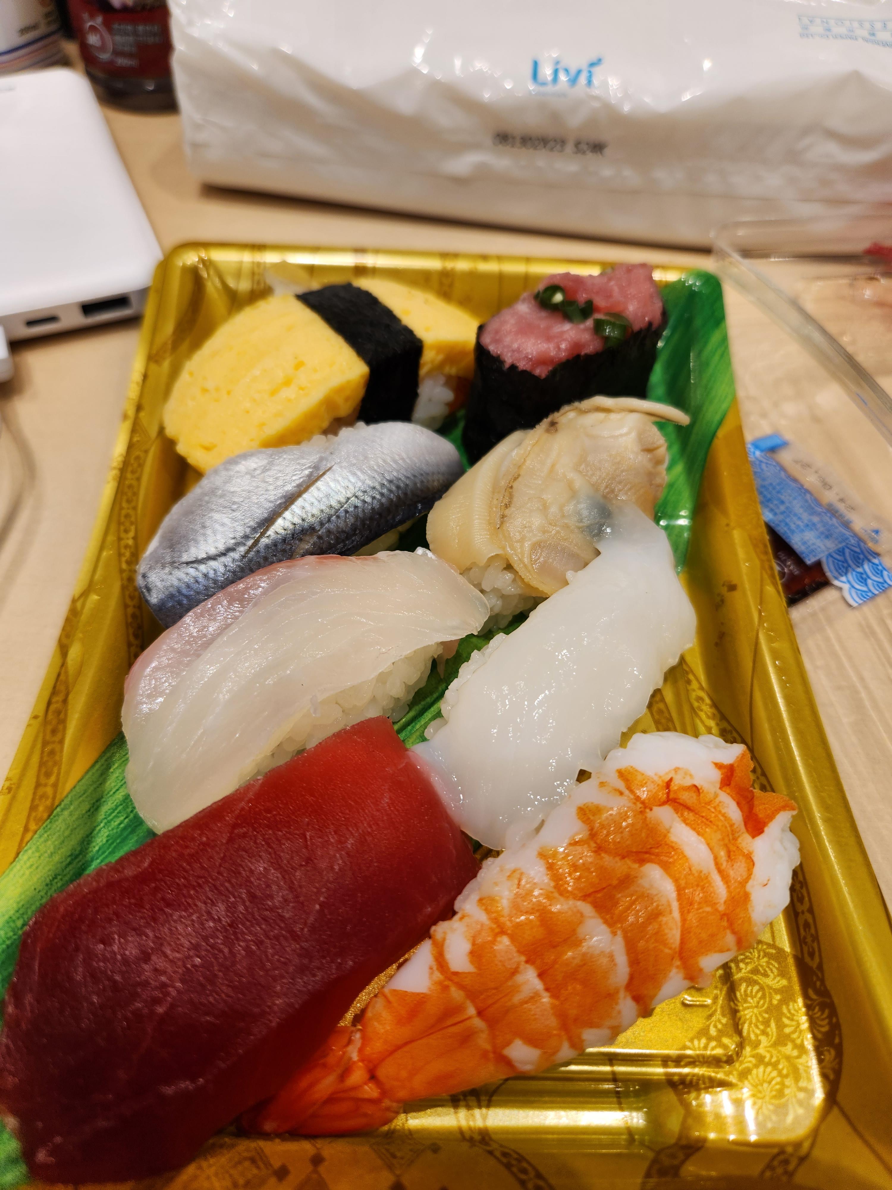 저녁은 그냥 가볍게 백화점 식품 매장에서 스시를 사먹는다.