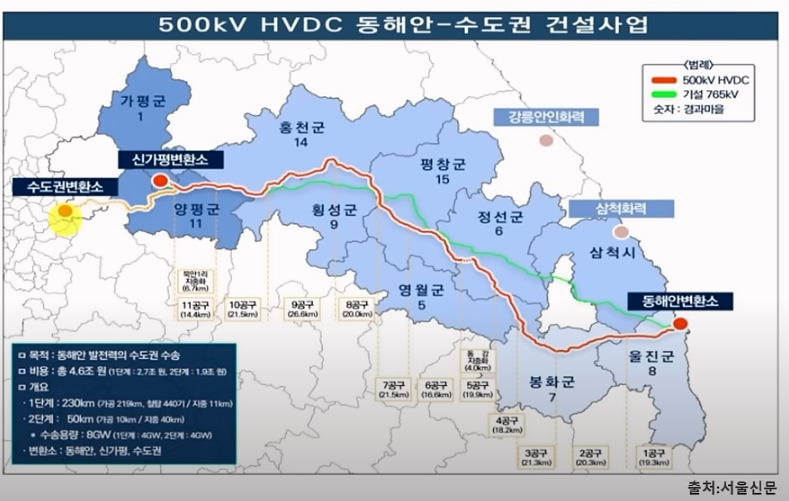 송전탑 설치에 따른 지역주민들 반대로, 아직 준공시기가 계속 미뤄지고 있음.