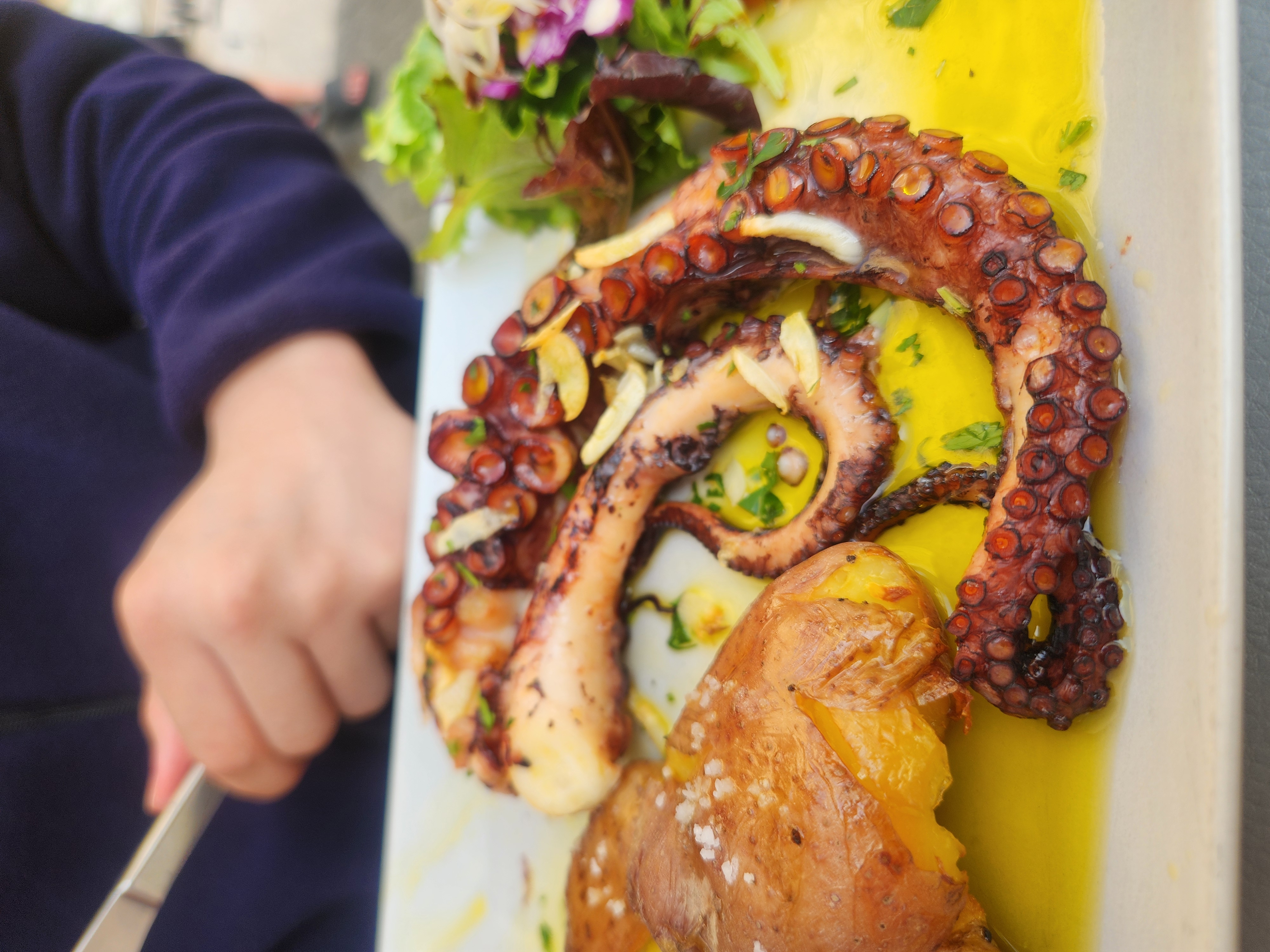 화이트 와인과 바깔라우(대구)와 치즈?계란?을 섞은 것 같은 요리, 문어 요리를 시켰다.